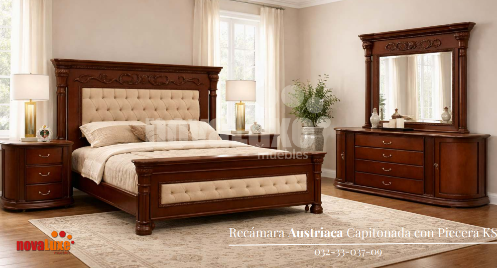 2 BURO, TOCADOR CON LUNA; CABECERA Y PIECERA
