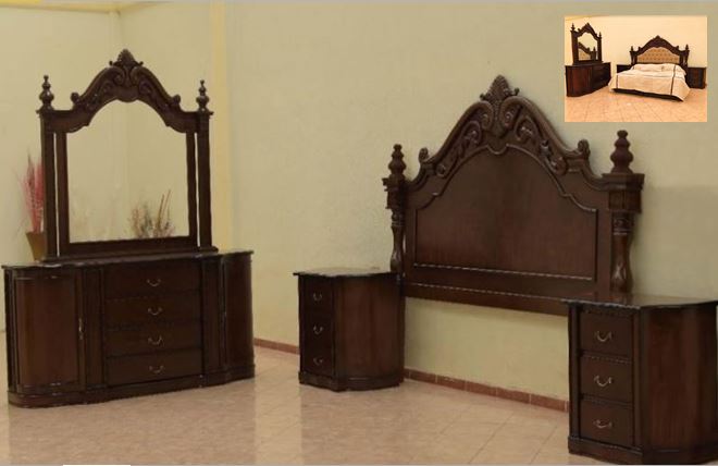 RECAMARA CLASICA EN MDF ENCHAPADO COLOR NOGAL TOCADOR 2.35CMX2MX54CMFONDO CON 4 CAJONES Y 2 PUERTAS, 2 BURO 82CMX76CMX50CM FONDO, Y CABECERA 2.45CMX1.98CMX17CMFONDO.