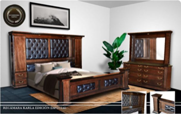 RECAMARA CLASICA EN MDF ENCHAPADO COLOR NOGAL CON APLICACIÓN DE POLIURETANO CABECERA CAPITONADA 2.80CMX1.90X28CM FONDO, 2 BURO 80X82X45FONDO C/3 CAJONES, TOCADOR CON LUNA 1.80X220X45CM FONDO 5 CAJONES 2 PUERTAS, PIECERA 2.60X73CMC28CM FONDO.