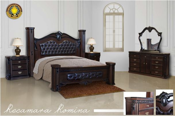 RECAMARA CLASICA EN MDF ENCHAPADO COLOR NOGAL CON APLICACIÓN DE POLIURETANO, CABECERA 1.90X3MX49CM FONDO, TOCADOR 1.80X2MXFONDO 40CM C/8 CAJONES Y LUZ, CAPITONADA
