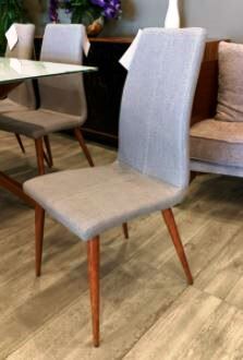 SILLA PARA COMEDOR EN TELA COLOR GRIS CON PATA TUBULAR COLOR NOGAL
